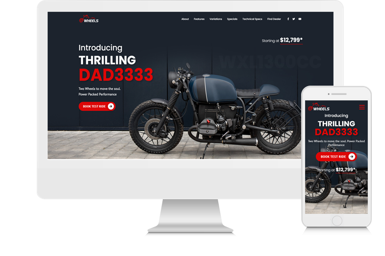Multipurpose and responsive HTML template to launch your vehicles Suitable to your up-coming car, bike, motorcycle, etc..